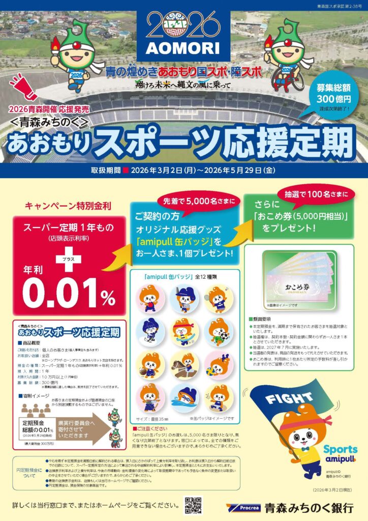 「<青森みちのく>あおもりスポーツ応援定期預金」が発売されています